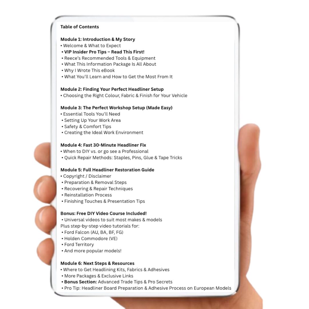 HEADLINING SECRETS eBook + BONUS Video Walk-Through Courses - Reeces Auto Headlining Repairs
